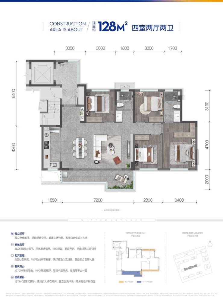景悦|建面约128㎡全景奢宅 阔尺阳台一揽双中庭景观