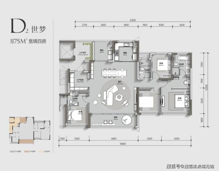 除了建面约143㎡的户型,建面约175㎡可以视为进阶版。