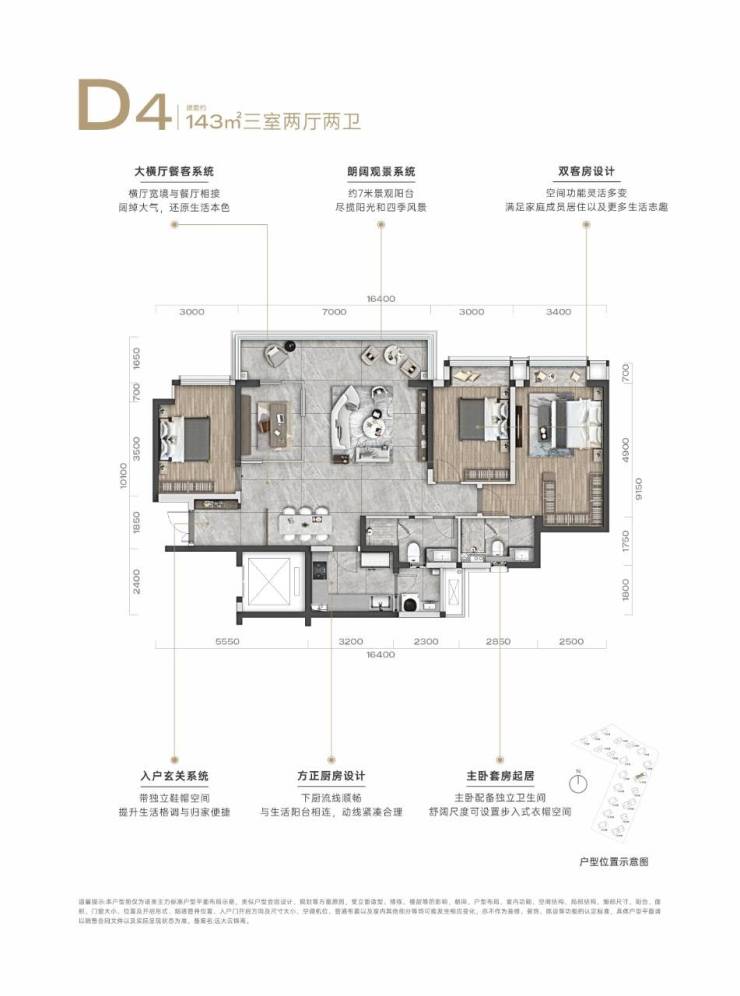 建面约143平套四