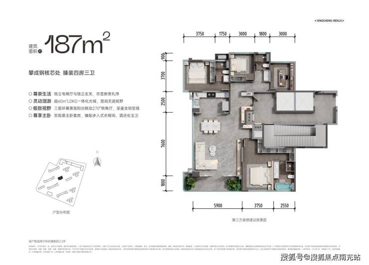 ◇ 璞隐归187㎡:专属电梯厅+双主卧套房配置