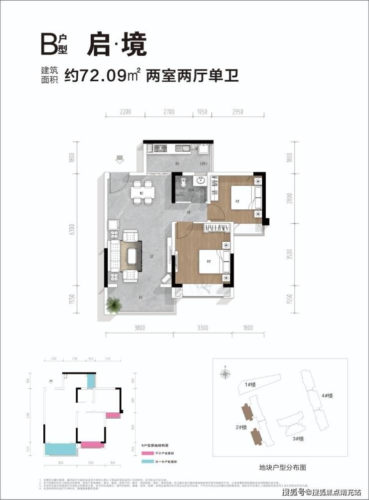 这里有多种实用户型供您选择。72㎡套二单卫户型 ,空间布局合理,满足小家庭温馨生活需求。
