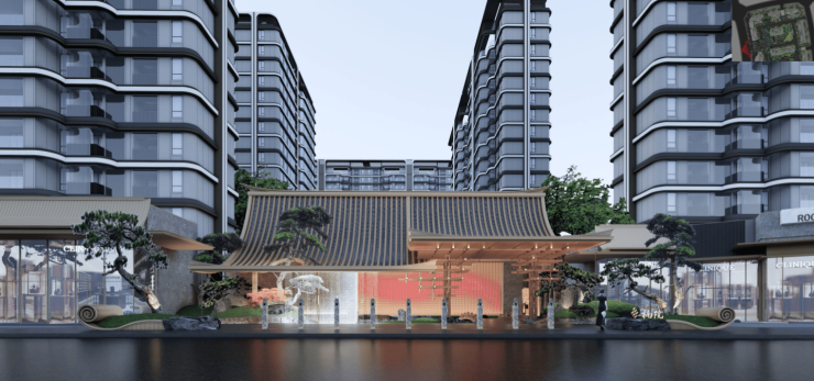 以宋式门仪为序,打造四重归家礼序:一重宽境大门,融合飞檐斗拱与奢石铺装,立序归家气场;二重园林步道,沿松风竹影漫步,步移景异;三重单元门户,人脸识别入户,私密尊崇;四重环岛车库,以光引导归家,仪式贯穿始终。