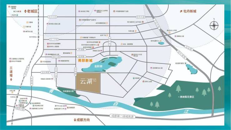 [项目地段]彭州市重点打造的产城湖金彭湖核心地段:项目所处的位置正是位于彭州市南部新城核心区域,位于协和路与连封南街交汇处,周边紧邻金彭湖,稀缺不可复制的生态自然资源