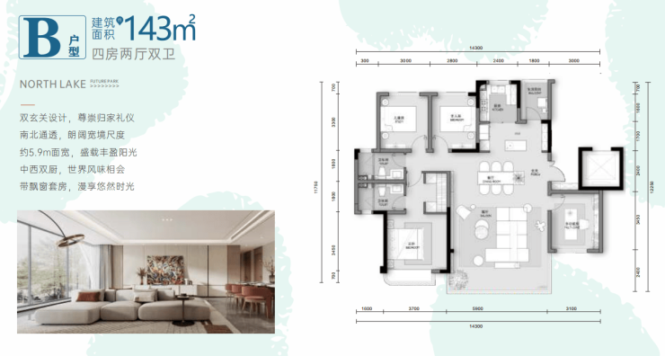 建面约143㎡-四房两厅两卫