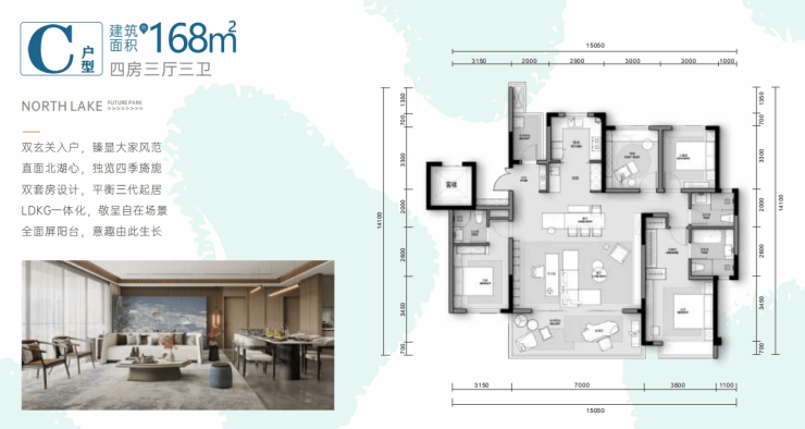 建面约168㎡-四房三厅三卫