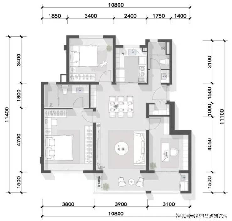③ 空间哲学 超高得房率设计,全龄段户型解决方案,满足不同家庭生命周期的居住需求。