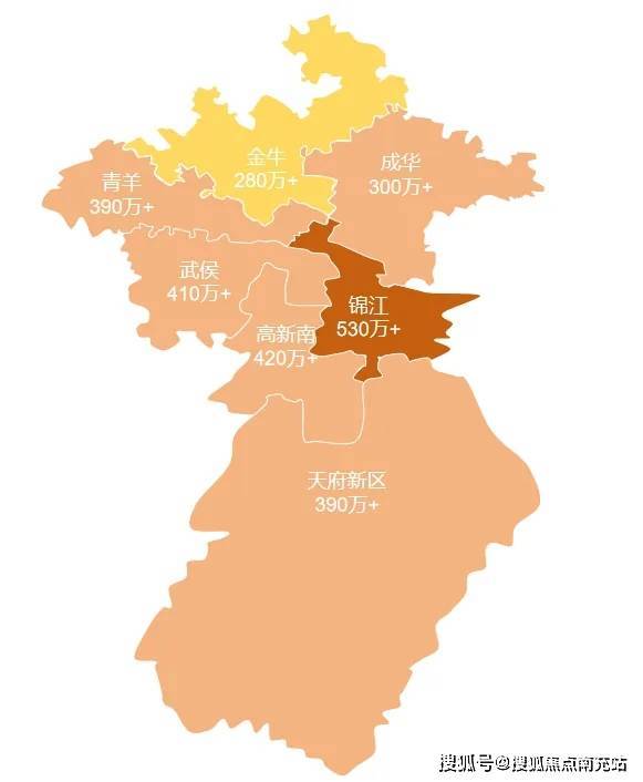 分区来看,锦江区已经超过530万;武侯区、高新南区超过400万;青羊区、天府新区也是接近接近400万的水平。300万的预算想在这些区域选择好的板块、好的产品难度太大。