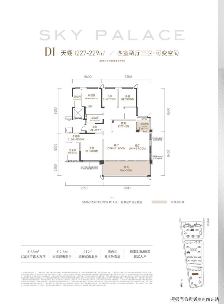 D1天翊户型(建面约227-229㎡ 四室两厅三卫+可变空间)