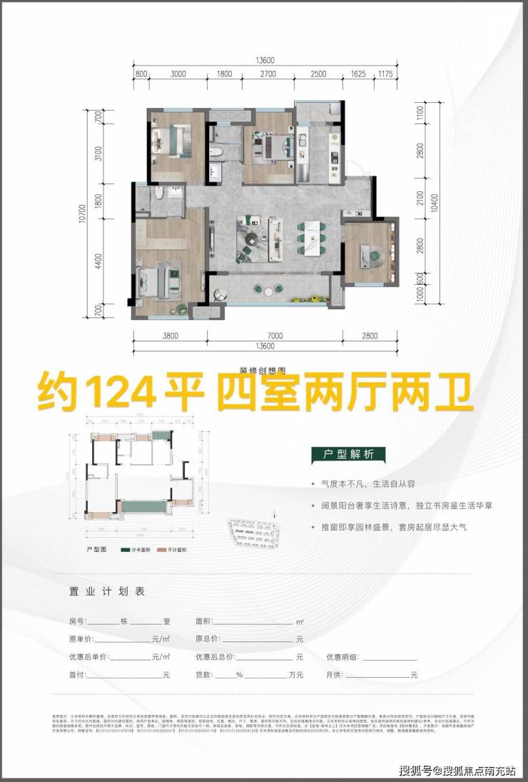 参考均价:高层5300+元/㎡起,洋房5500+元/㎡起,124㎡户型6000+元/㎡