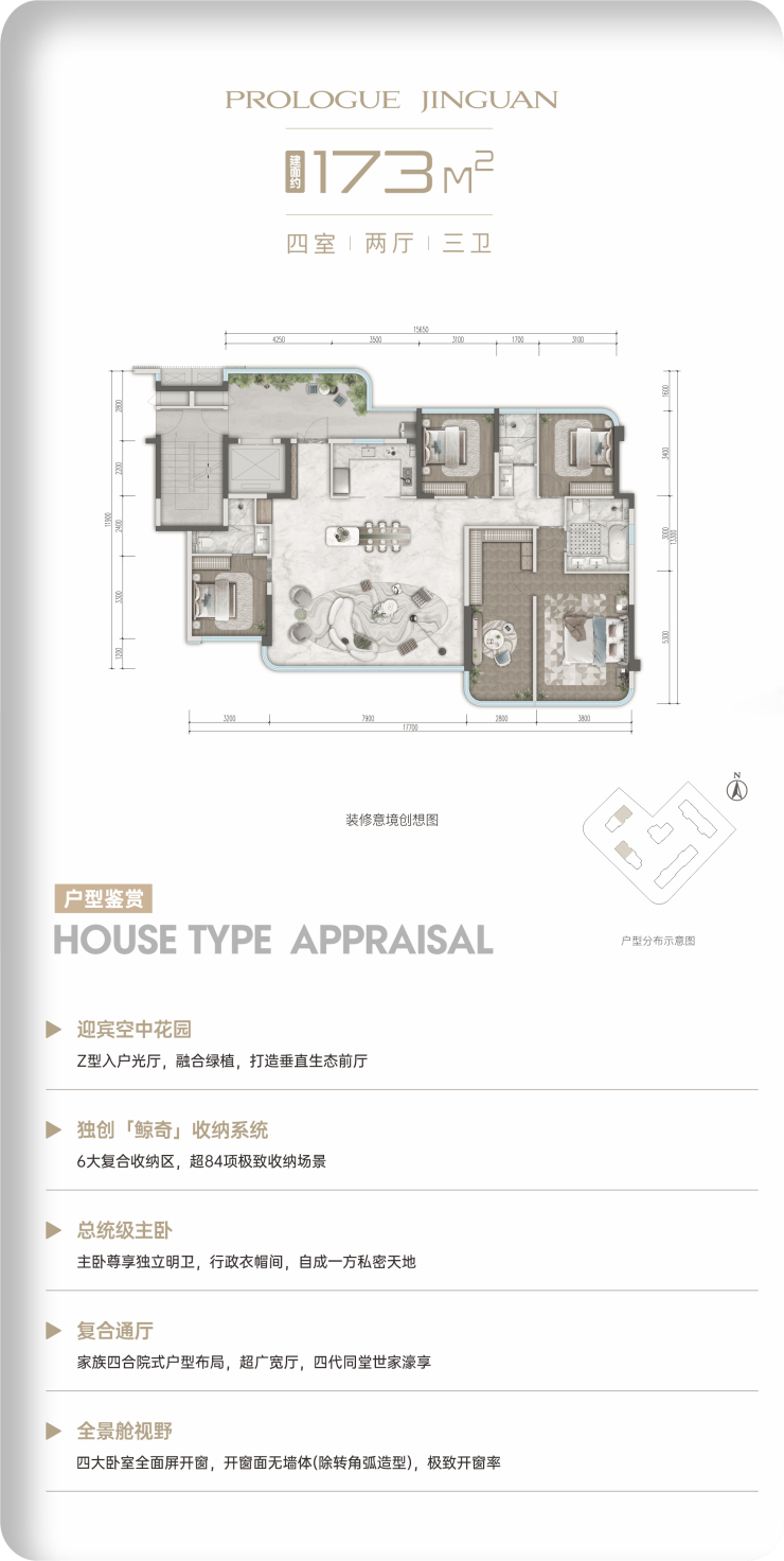 ㎡四房三卫(得房率约 94%):高端改善首选,舒适度拉满