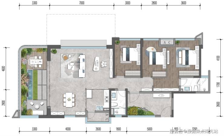 · 7.1m宽 L型花园,超大观景视角;