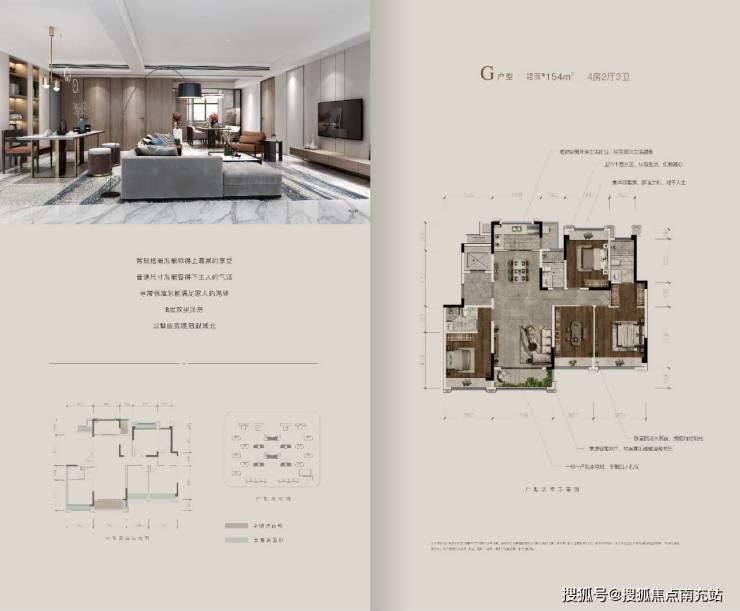 #### 洋房户型- **154㎡ 四室两厅三卫**:配置奢华,三卫设计极大地提升了生活的便利性,避免了家庭成员早晚洗漱的拥挤。主卧采用套房设计,配备独立卫生间和衣帽间,尽显尊贵气质;超大阳台,可将社区美景尽收眼底,让业主在闲暇时光享受惬意的观景体验。业主在主卧里能拥有专属的私密空间,在阳台上能欣赏社区的美丽景色,感受生活的美好。