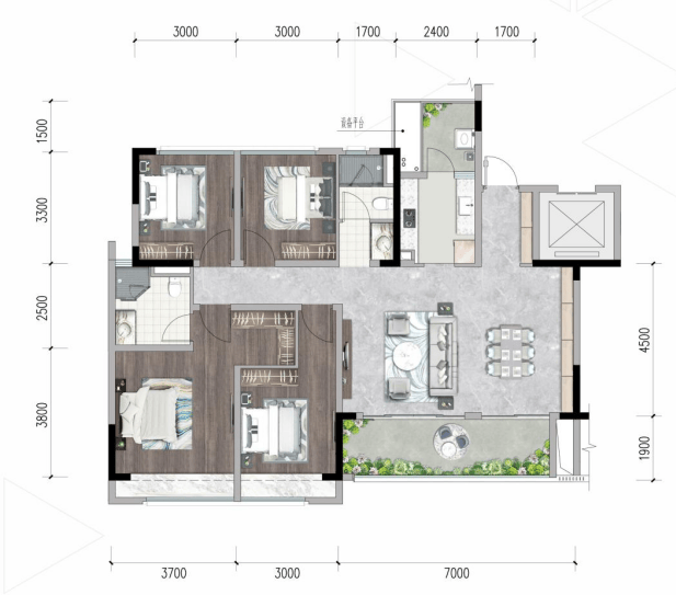 产品面积:主力建面约119m²/134m²/141㎡/151m²/173m²
