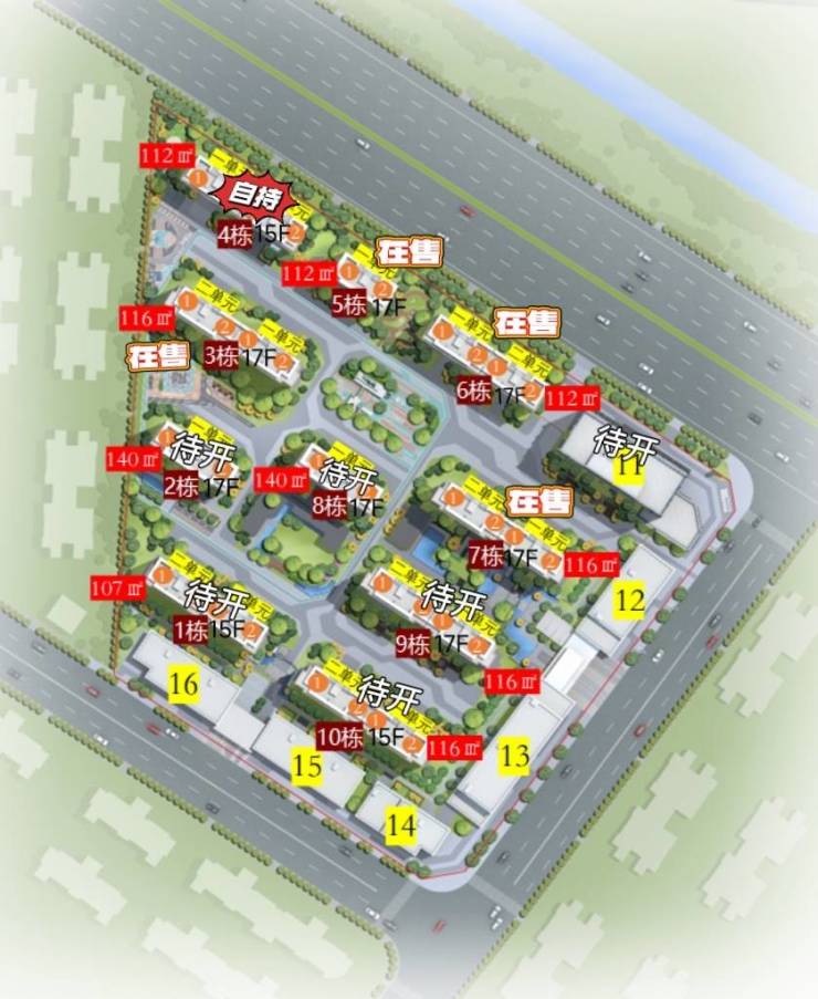112-140m²低密公园板式小高层,私梯花园入户,全明采光,户型方正,区域内臻稀的112m²/116㎡、2T2板式、高配产品。