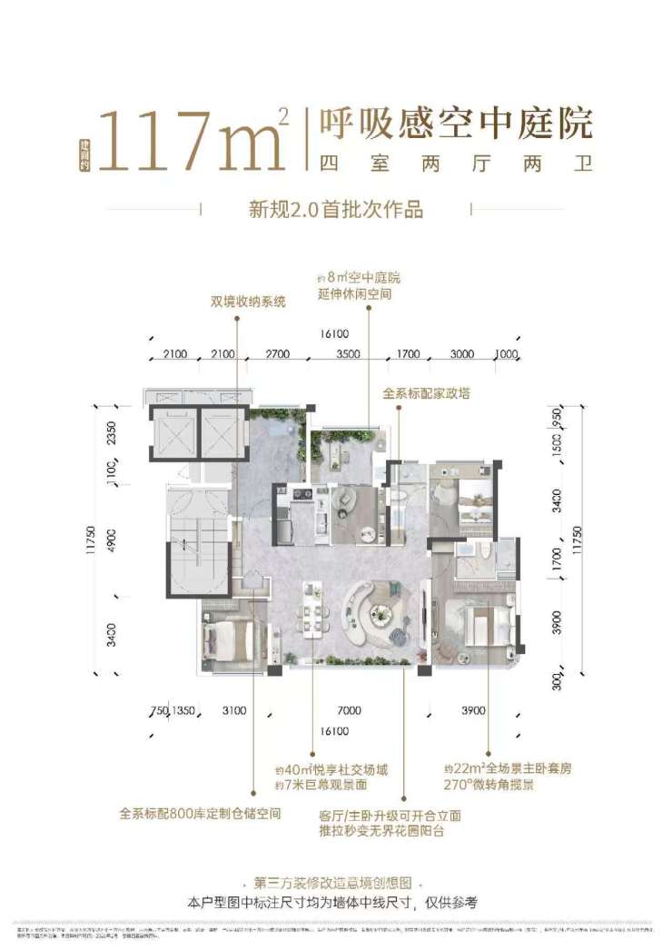 建面约117平套四