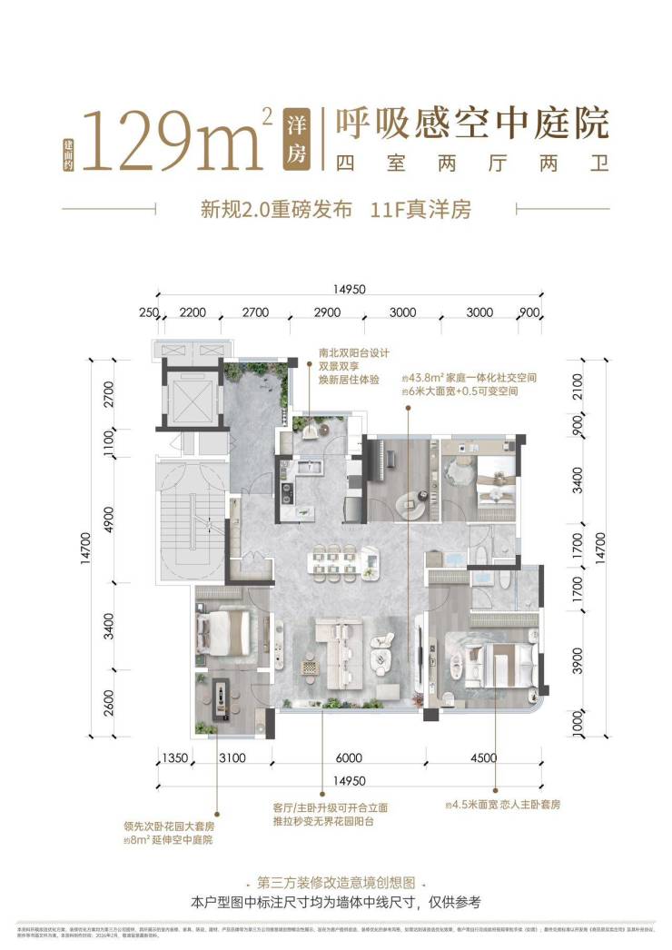 建面约129平套四