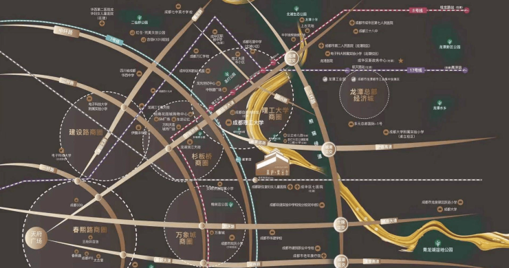 交通:周边有 4/7/8 号线三条地铁线路环绕,距离 7 号线理工大学站约 800 米,7 号线崔家店站 1.5 公里左右,8 号线十里店站约 1.2 公里。此外,项目毗邻杉板桥路,与成华大道和东三环交汇,1 公里内有舜和家园站、长融东三路等公交站点,交通便利。