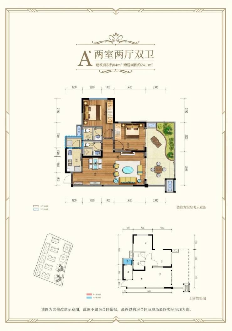 首层:84㎡两居(118万,21㎡景观阳台)
