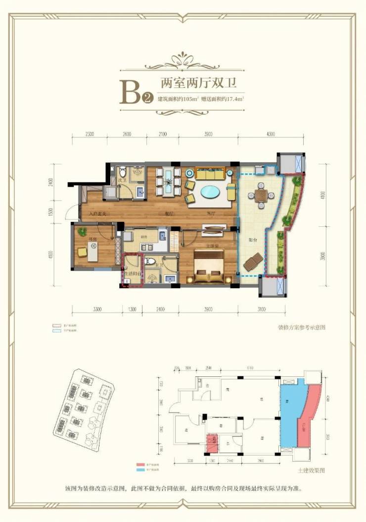 二层:105㎡两居(147万,27㎡观景露台)
