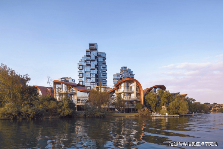 【麒麟荟】作为麓湖核心区的高层项目,同样引人注目。它是首个登上美国《福布斯》杂志的国内豪宅。【麒麟荟】位于麓湖的核心位置,仅有4栋建筑,由美国著名设计公司5+DESIGN设计。该项目以水晶盒为设计灵感,建筑空间打破了传统高层垂直向上、塔状等固定模式。每一层都通过不规则、错落出挑的空间构建出晶体感十足的建筑结构。建筑70%的外墙面采用玻璃材质,仿佛悬浮于湖岛之上,充满未来感与神秘感,因此被誉为“空中水晶魔方”。