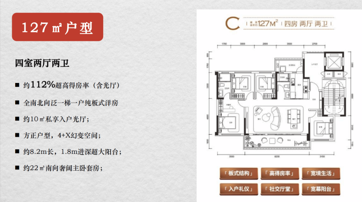 建面约127平套四