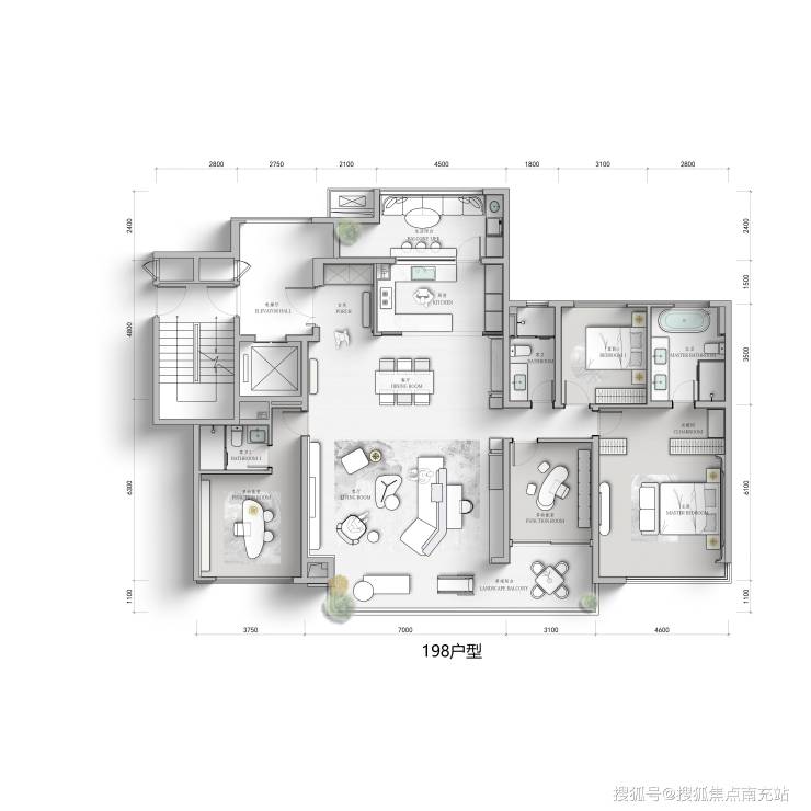 其中143-170-198m²户型有一楼带花园,顶楼有顶跃