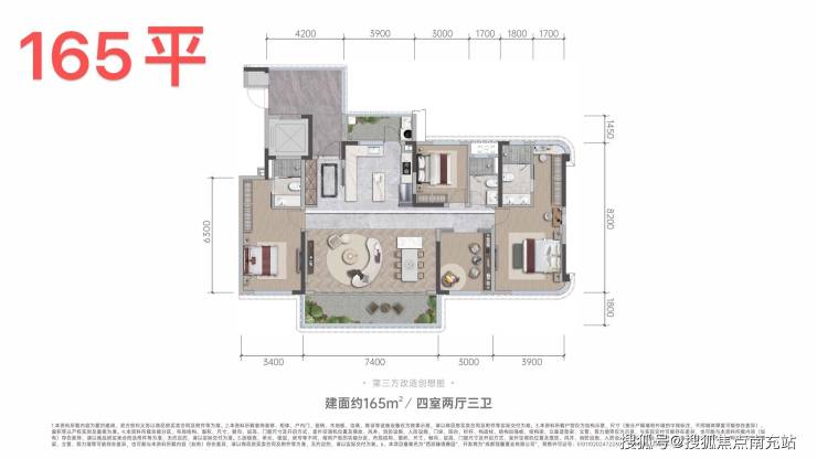 在北区,面积为165平的户型在1号楼与2号楼均有设置。具体而言,1号楼的这一户型处在16层,而2号楼的该户型位于11层。
