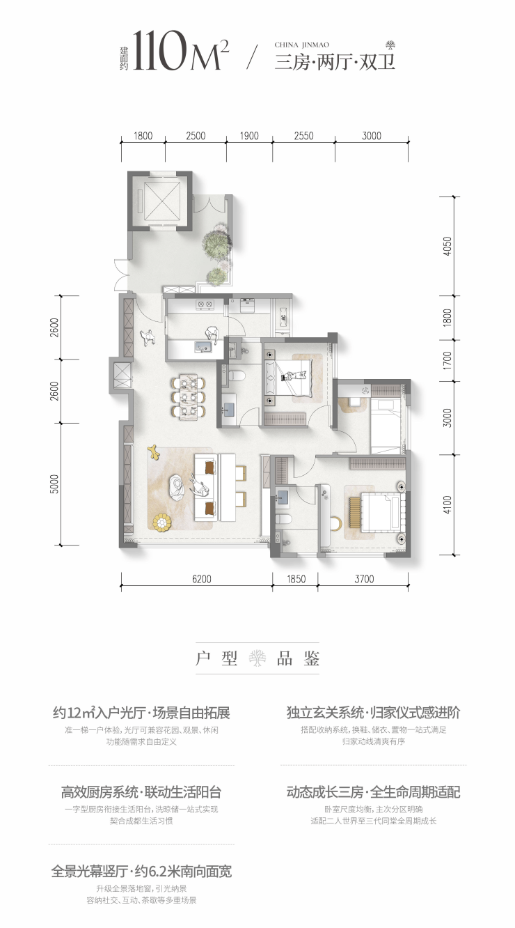 建面约110平套三
