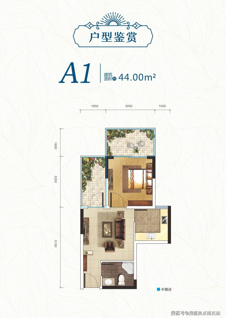 带花园阳台,一室一厅一卫