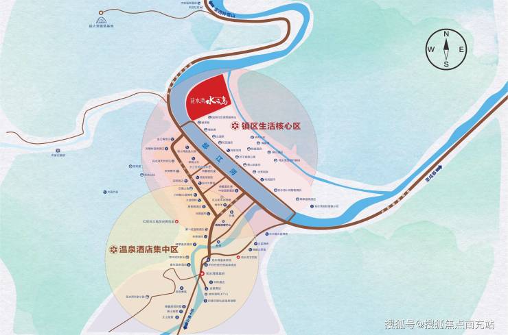 项目就在花水湾镇上,常住人口多,醇熟社区配套,餐饮、医疗、休闲娱乐一应俱全,目前已建成集旅游观光、温泉浴疗、康养度假于一体的大型温泉疗养度假基地。步行三分钟即到镇区核心。(特别提示:经纪人带访客户先开车进入温泉酒店集中区逛一圈体验镇区品质配套后再带入售楼部)