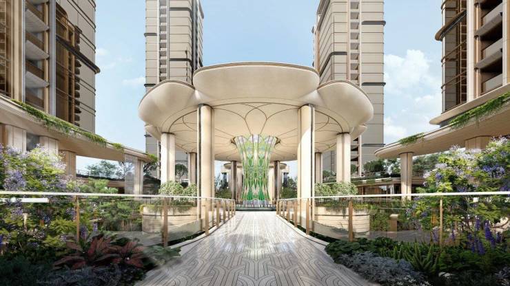 6.产品规划出色:项目容积率仅2.5,属于低密规划,9栋18-26层的高层建筑采用错位排布,楼间距最低40米起步,最大可达56.5米,保证了每户的采光和视野通透性。所有一楼全架空,架空层层高9-12米,且从小区入口到每一个单元都实现风雨连廊全覆盖。