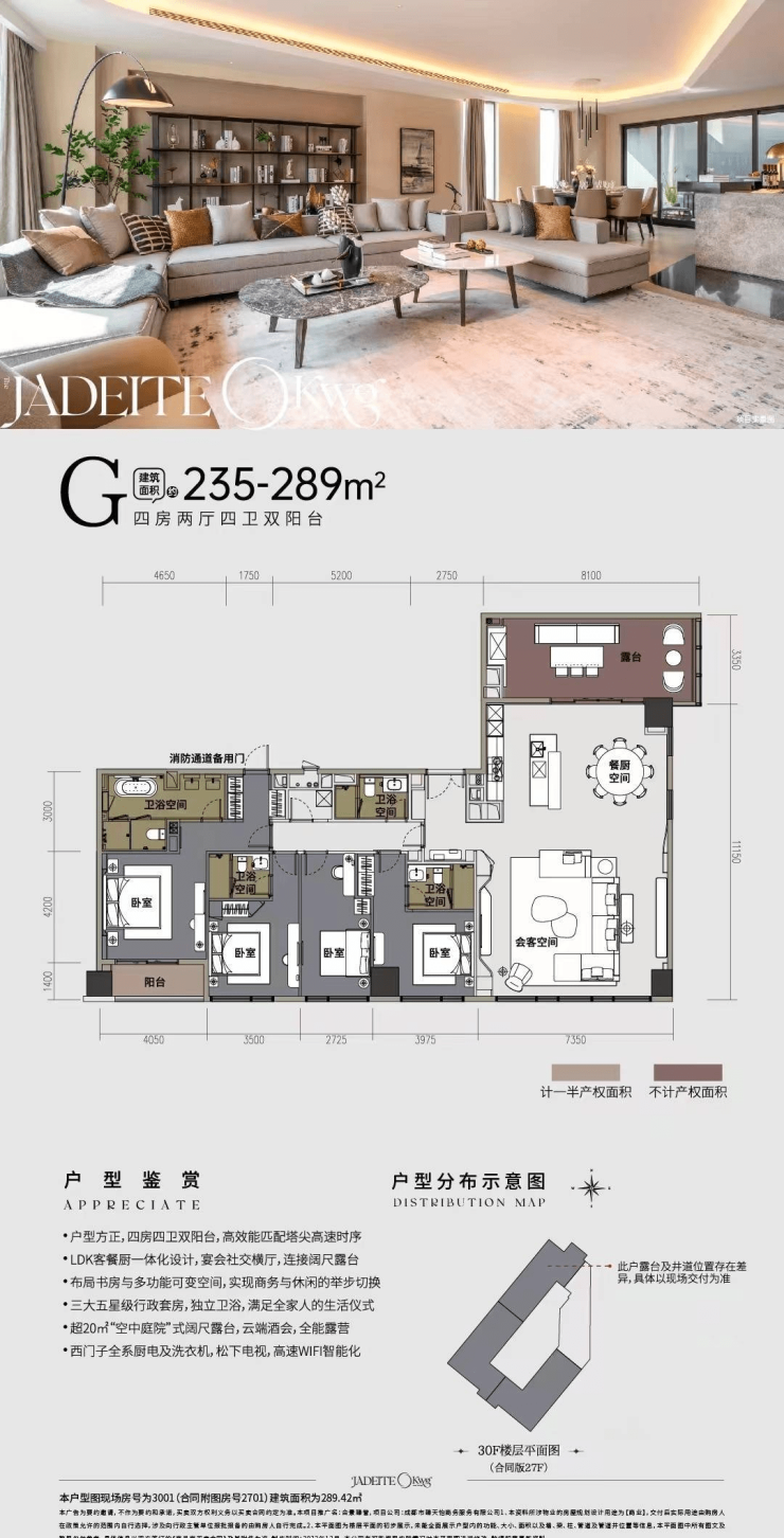 合景J300采用港式现代奢雅风格,外观简约而不失大气,内部装修则更是精益求精。项目拥有超208道精装高奢工艺,全屋采用西门子、弗兰卡、松下等全进口品牌家电及软装,每一个细节都彰显出奢华与品质。此外,项目还设计了全成都罕有的100%全套房户型,超90%的户型含有天际观景阳台,推窗即可尽览交子大道的繁华景象,让人仿佛置身于城市的云端之上。