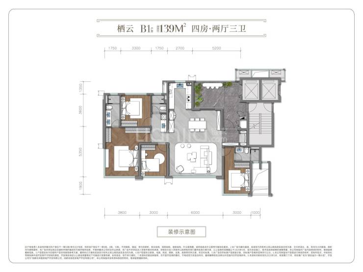 建面约139平套四