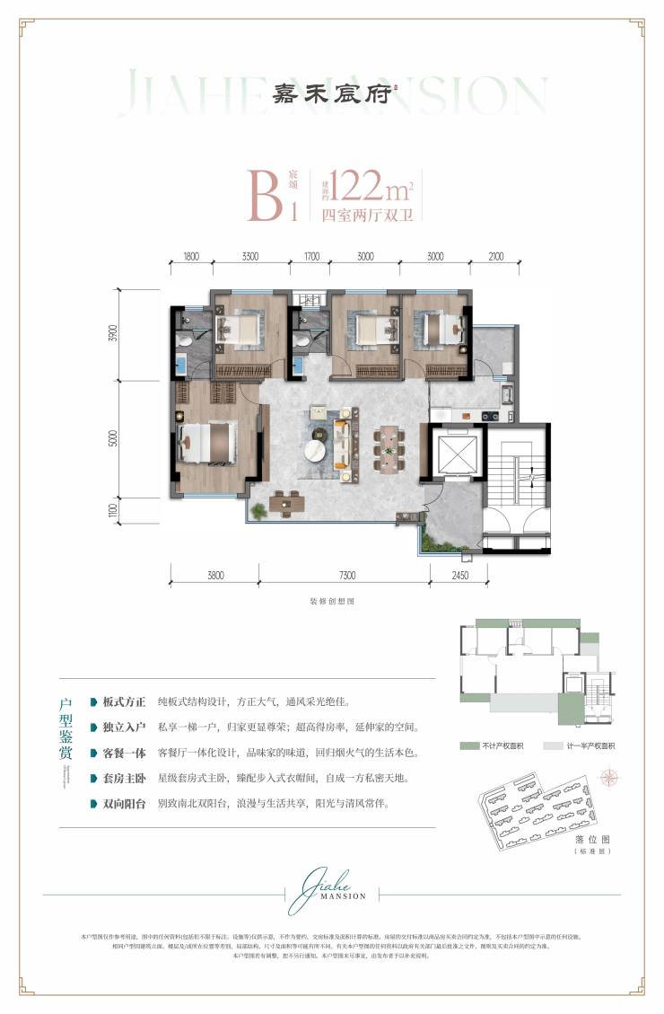 建面约122平套四