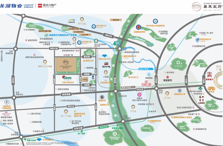 「教育新中芯」——嘉禾宸府东侧约600米已配建的成都七中菁才学校已经于2024年1月18日正式动工修建,南侧更有绵阳东辰教育集团在成都的首座学府成都东辰外国语学校。