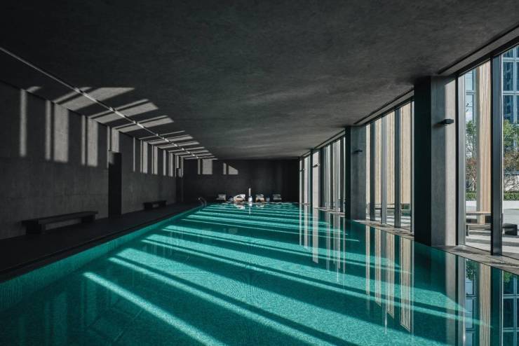 5.内部环境优越:园林景观灵感源自蒙德里安几何美学,三栋建筑围合出近2万平超大私属中庭。每栋还配备了奢华大堂、恒温泳池会所、健身瑜伽中心、咖啡书吧等高端公共空间。