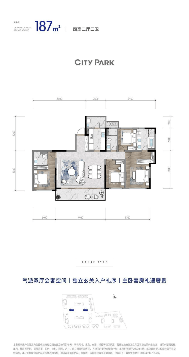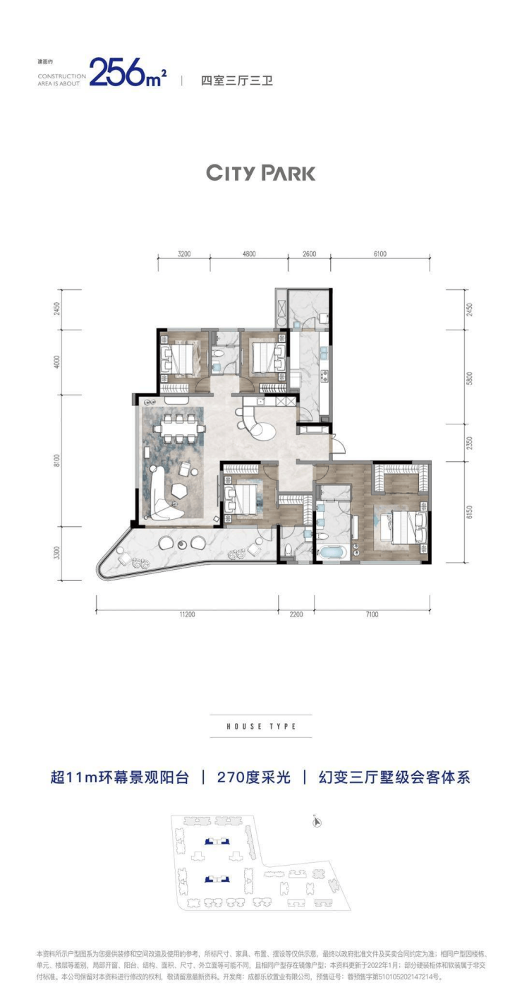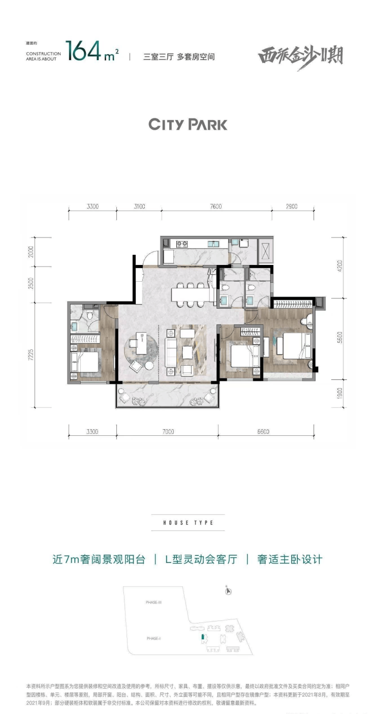 西派金沙占地约137亩,分三期开发,产品以“大平层+少量洋房”的组合为主,满足不同家庭的需求。高层住宅楼拥有从90平方米到256平方米不等的全装修公寓,户型多样,设计合理。尤其是主推的152平方米和177平方米大平层,采用三房四房设计,超大的开间阳台和宽敞的室内空间,让居住者享受到极致的采光和视野。洋房产品更是稀缺,最高仅7层,保证了居住的私密性和舒适度。