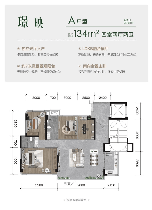 建面约134平套四