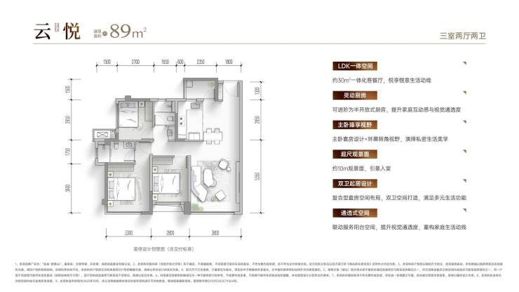 建面约89平套三