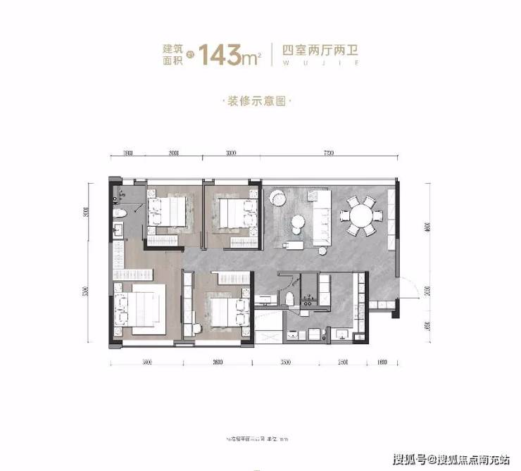 项目主力户型为建面约126㎡的套三和建面约143㎡的套四。两款户型在舒适度上并不存在严格的“壁垒”,反而把每一款户型的尺度感、空间感都做到了进阶升华。