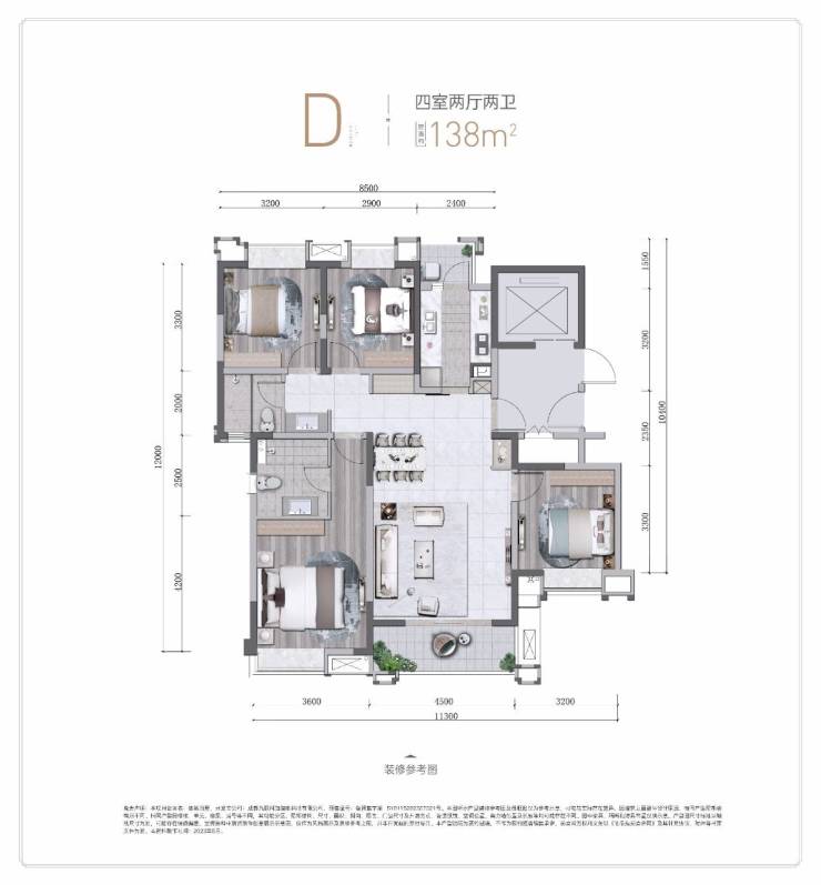 建面约138平套四