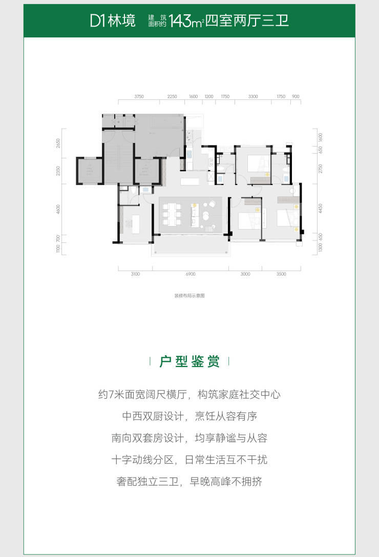 建面约143平套四