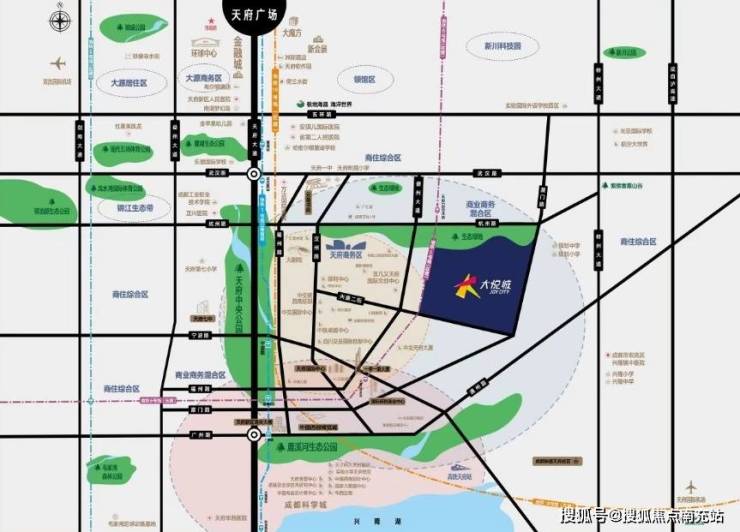 。 ——项目配套——【交通】构建了全方位立体交通体系。【路网交通】梓州大道、天府大道、益州大道、剑南大道、武汉路等道路环绕,出行便捷。【轨道交通】地铁线路丰富,已建成的 6 号线、19 号线,以及规划中的 16 号线在天府商务区站设站,距离本项目约 300 米;1 号线的天府公园站距项目约 1 公里;1 号线、18 号线的西博城站距离本项目约 1.5 公里。 【教育】项目周边汇聚天新 C 区优质教育资源。幼儿园有天府新区第二十幼儿园、秦皇湖幼儿园、元音幼儿园、金苹果花园城幼儿园、科学城幼儿园、四川天府新区金安幼儿园、成都天府新区兴隆幼儿园等。 【医疗】拥有强大的国际化医疗保障。华西天府医院总投资额约 40 亿元,总建筑面积约 26.1 万平方米,设置床位约 1200 张、手术室约 66 间、停车位约 2000 个,是一所由华西医院按同质化模式全面运营管理的,学科门类齐全的现代化、智慧化综合性医院。 【生态配套】周边有一湖一河一园。其中,兴隆湖湿地公园面积约 5400 亩,是成都“产城湖”时代样本,也是天府新区的“城市绿心”。 【商业】拥有 30 万方旗舰级商业引擎——成都天府大悦城,它聚合生活、消费、文化等功能,形成循环的生活生态系统,为整个商务区提供一站式生活配套