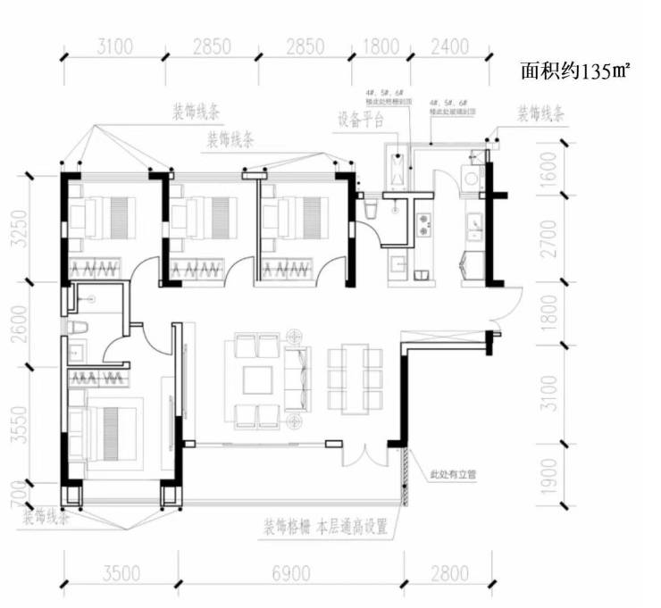 二期主力户型:125-180㎡(三至四房)