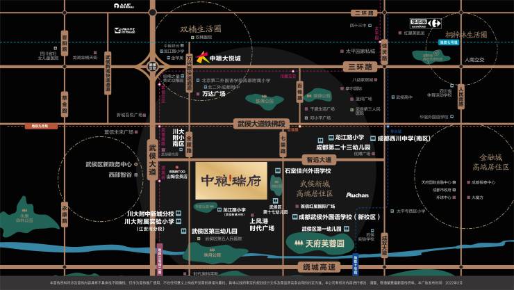 成都中粮瑞府项目鼎立武侯新城核芯,近拥双凤TOD城市综合体(双凤桥T0D,3公里范围内覆盖7条线路、11个站点)、三地铁、双公园配套;贵隐繁华与自然交辉之地,出揽盛景,入府归心。当央企中粮的精工基因,邂逅成都主城难得的低密生态版图,中粮瑞府便注定成为城市高端人居的标杆之作。