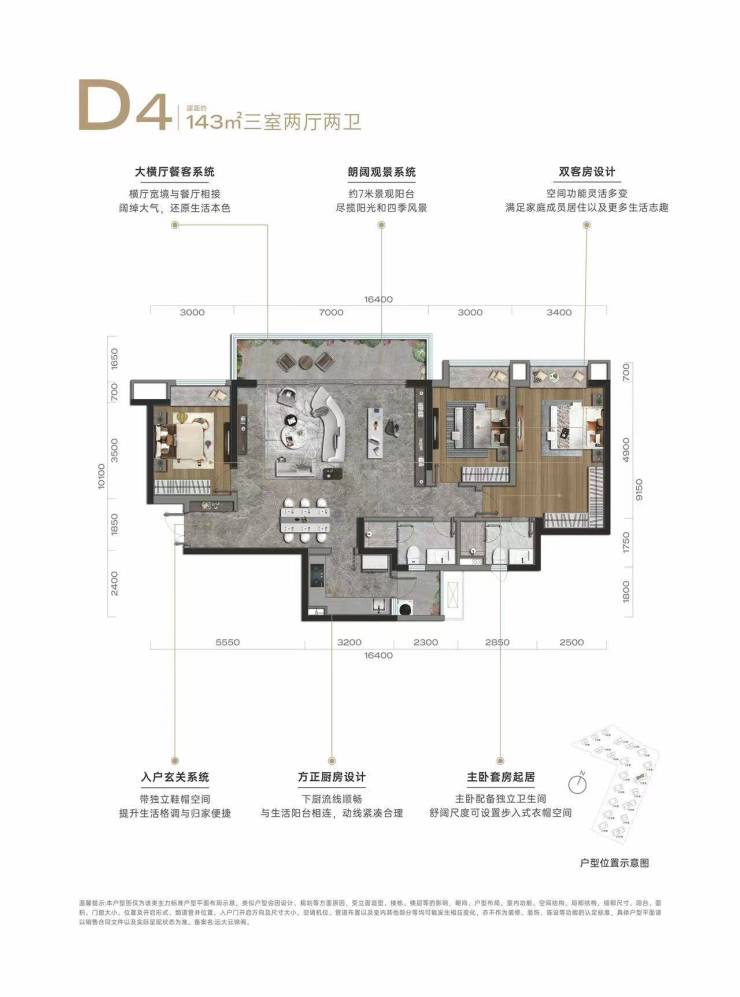 建面约143平套三