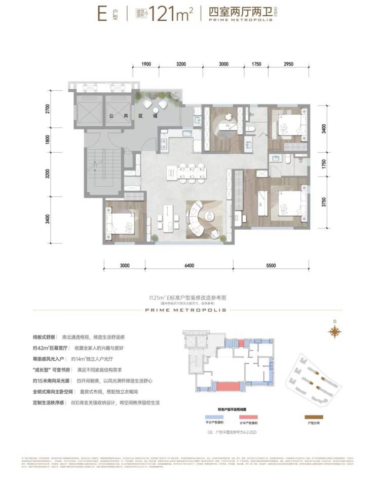 建面约121平套四