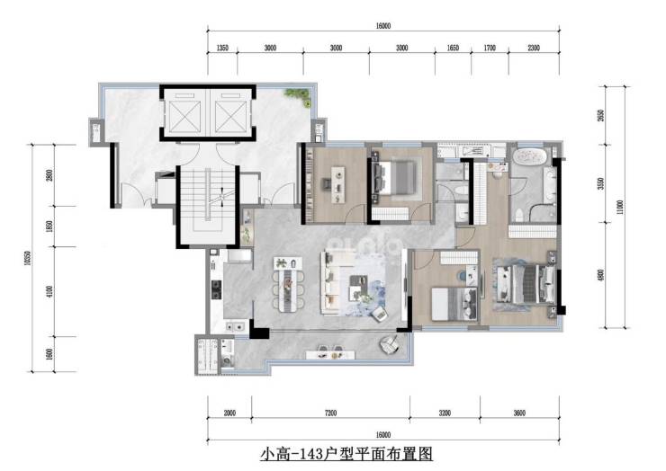 建筑面积范围:125-143㎡宽景四居平层,190-210㎡城市叠居别墅