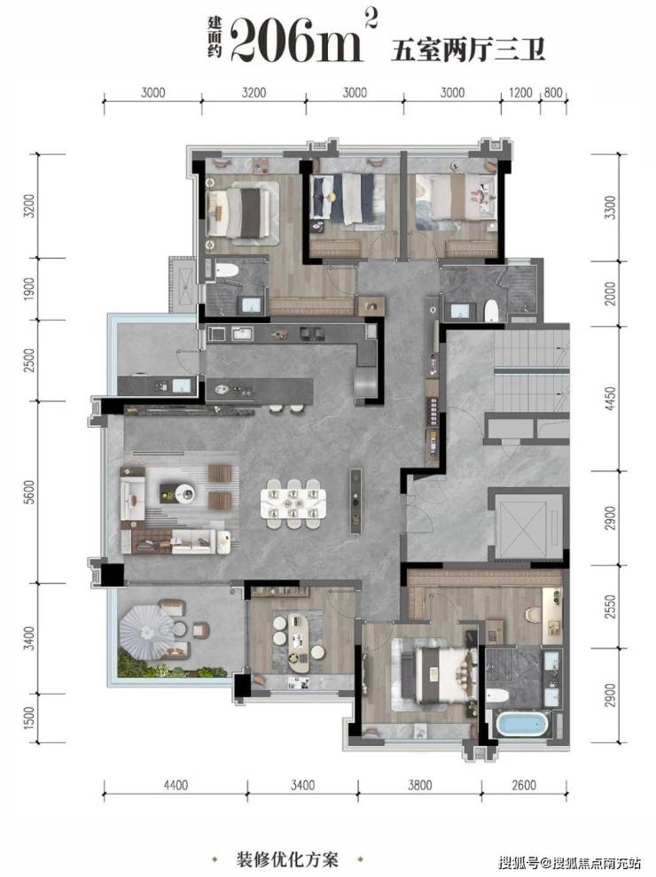 项目提供建面约126-206㎡多元户型选择,均采用2T2板式结构: