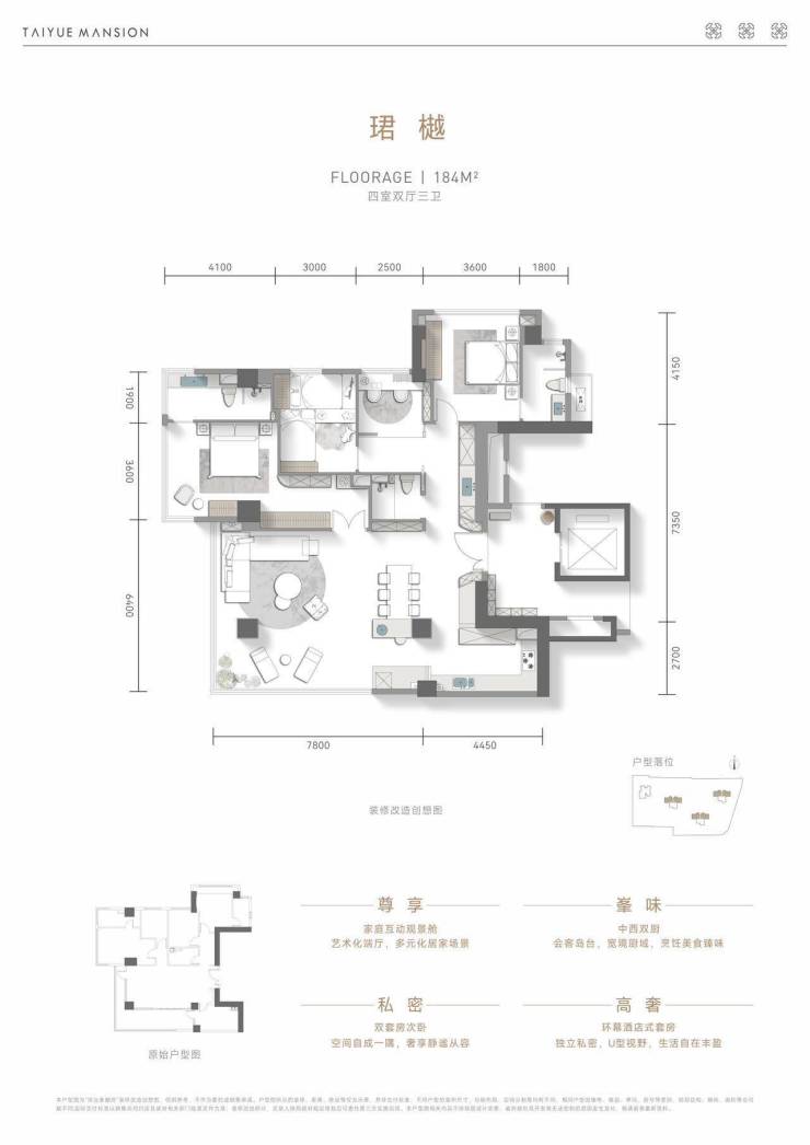 建面约183平套四